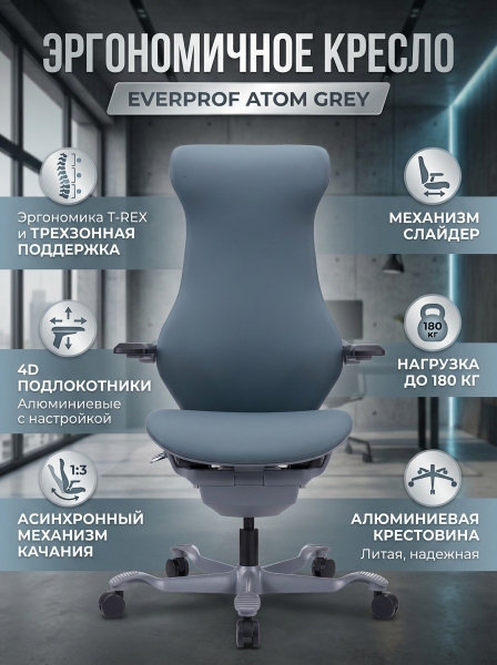 Эргономичное кресло Everprof Atom Grey экокожа, цвет серый - Доставка