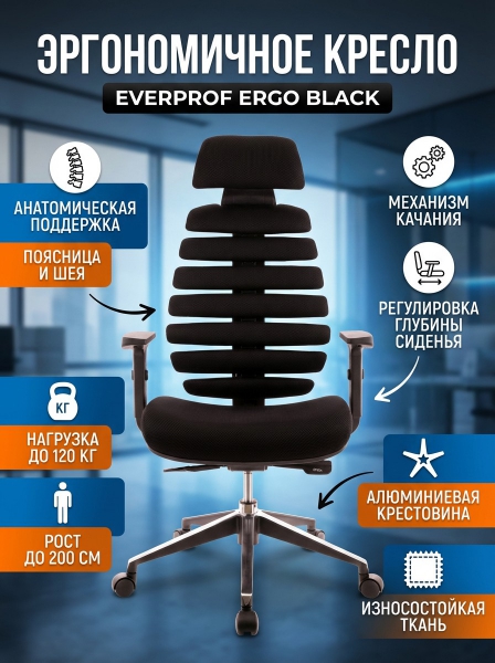 Кресло эргономичное Everprof Ergo Black ткань - Доставка