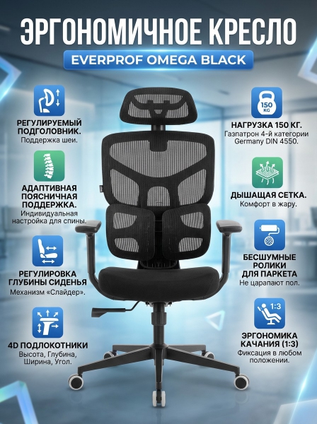 Эргономичное кресло Everprof Omega Black чёрная сетка - Характеристики