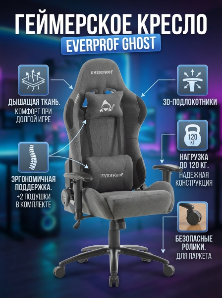 Геймерское кресло Everprof Ghost ткань, серый - Доставка
