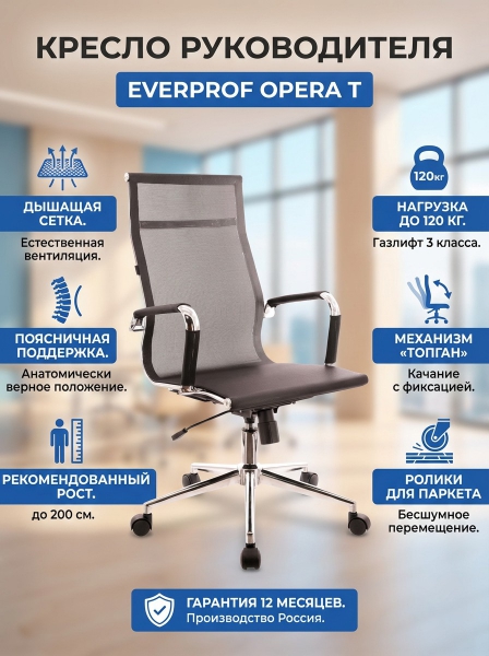 Кресло для руководителя Opera Т, сетка черного цвета.