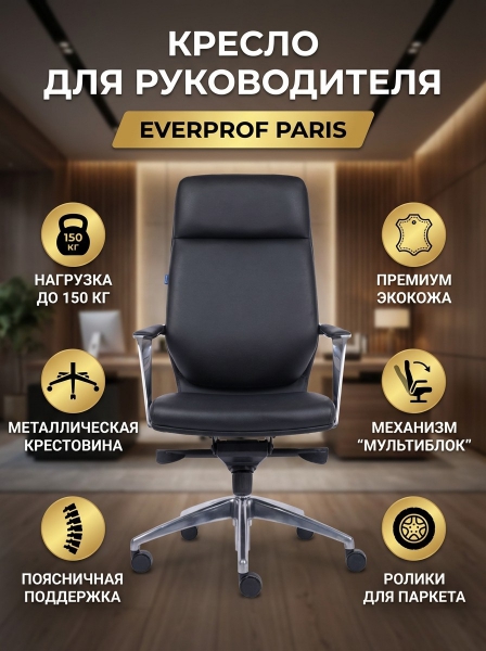 Офисное компьютерное кресло Everprof Paris премиум-класса из экокожи с удобным подголовником и поясничной поддержкой.