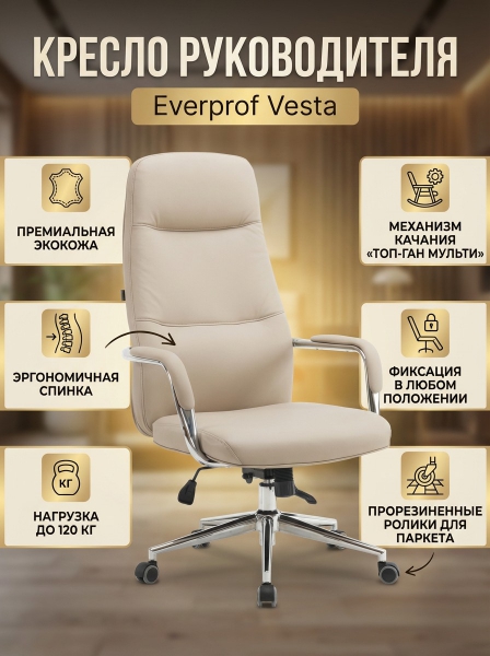 Компьютерное кресло Everprof Vesta создано для длительной комфортной работы. В обивке из высококачественной экокожи прекрасно подойдет руководителю.