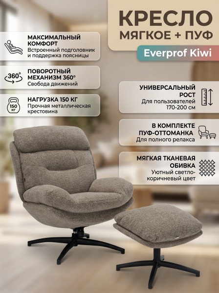 Кресло мягкое Everprof Kiwi ткань, светло-коричневый - Бренд